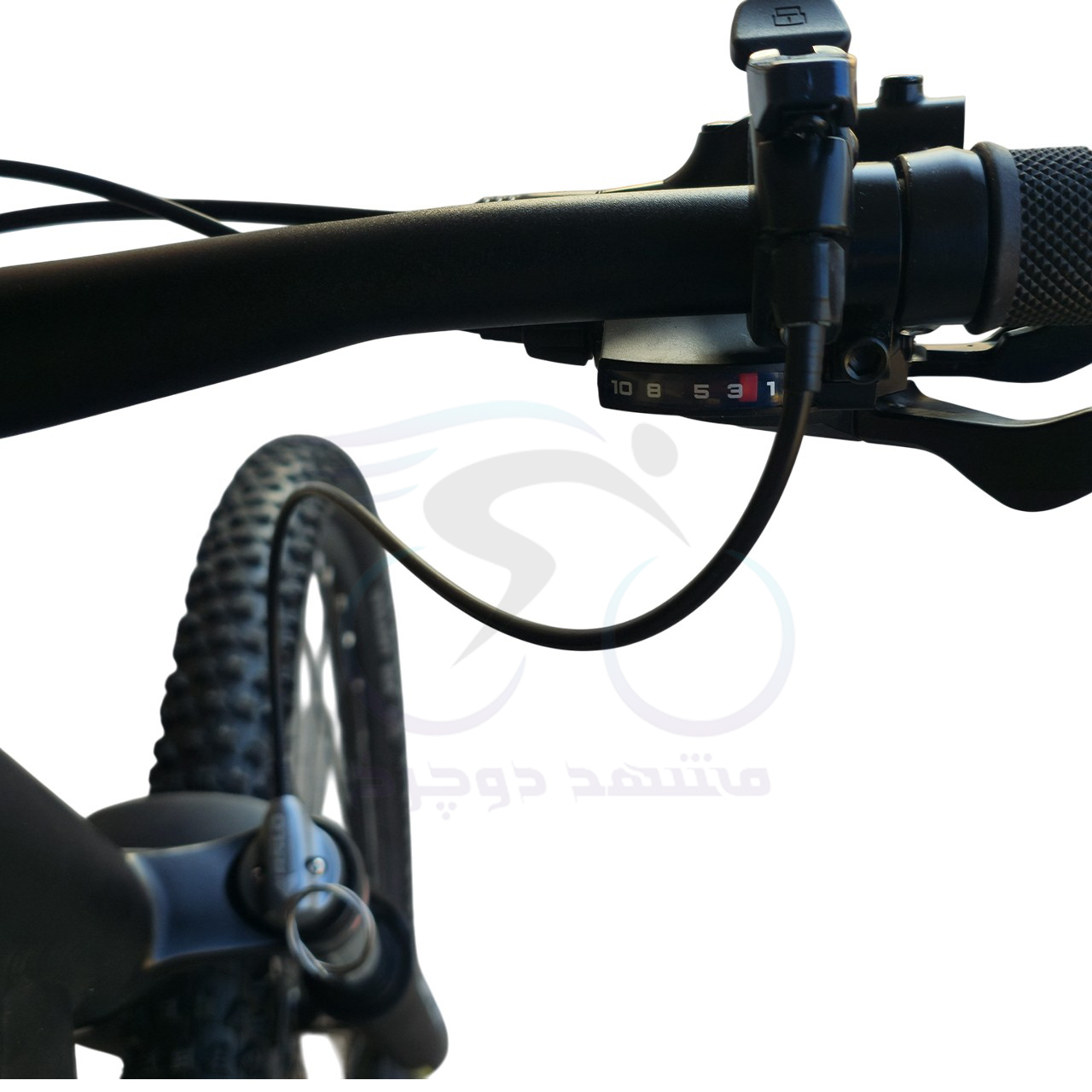 • مکانیسم دوشاخ:دوشاخ آلومینیومی کمک دار قفل شو تنظیمی ریموت دار (قابلیت تنظیم نرمی دوشاخ از روی دسته فرمان دوچرخه)