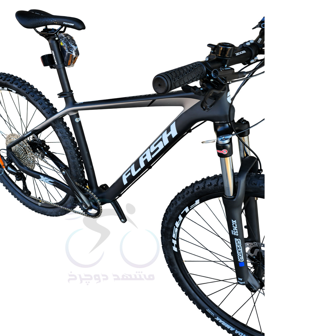 دوچرخه حرفه ای فلش FLASH کربن مدل ولنتاین VALENTINE 2026 سایز 29 بدنه فوق سبک فیبر کربن ترمز هیدرولیکی شیمانو MT200 سیستم دنده 12*1 سرعته شیمانو دئور دوشاخ حرفهای آلومینیومی ریموت دار برند سانتـور SUNTOUR XCM32 Alloy Remote Suspension تایرهای ابریشمی کندا طوقه دولایه آلومینیومی توپی بدنه بلبرینگی آلومینیومی