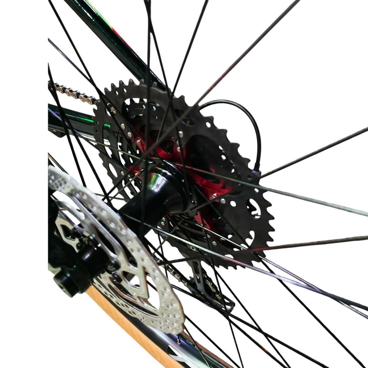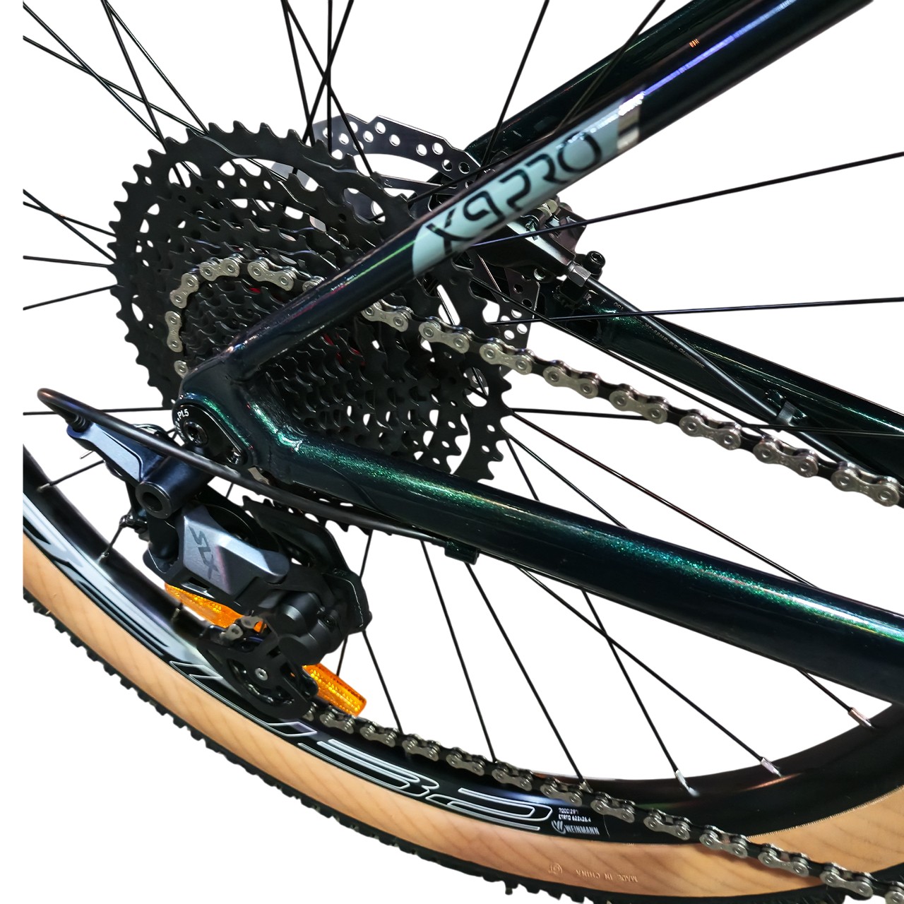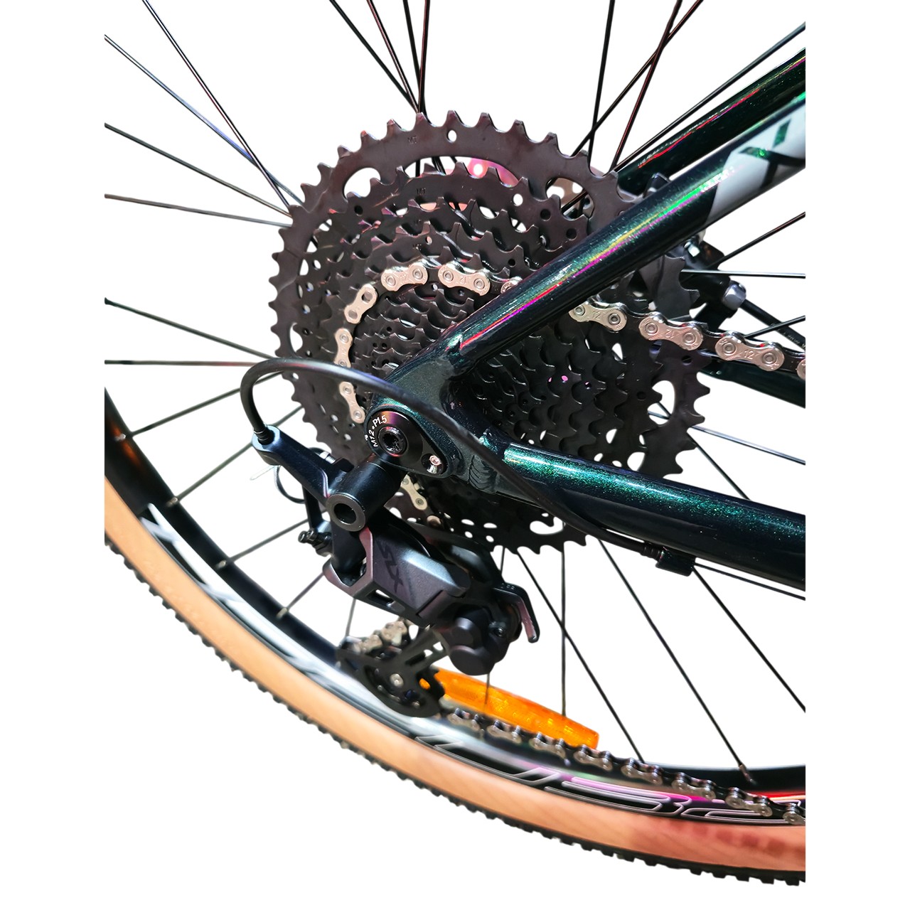 دوچرخه فوق حرفه ای ترینکس TRINX مدل اکس 9 پرو X9 PRO دارای طبق قامه تکی حرفه ای 12*1 مدل پروویل PROWHEEL 36T*175mm آلومینیومی اصلی بوده که قدرت و کارایی فوقالعادهای را در صعودها و مسیرهای چالشی فراهم میکند. خودرو 12 سرعته CS-M9012 Cassette 11-50T نیز با ترکیب دقیق دندهها، به دوچرخهسوار این امکان را میدهد که ایده آل ترین و بهترین تنظیم و پیکربندی را برای شرایط مختلف مسیر انتخاب کند. این ویژگیها دوچرخه حرفه ای ترینکس TRINX مدل اکس 9 پرو X9 Pro را به یک دوچرخهی فوق حرفهای و قابل اعتماد تبدیل کرده است که برای دوچرخهسوارانی که به دنبال برندینگ معتبر، سرعت، کیفیت عالی و عملکرد بالا در مسیرهای دشوار هستند، انتخابی بینظیر است.